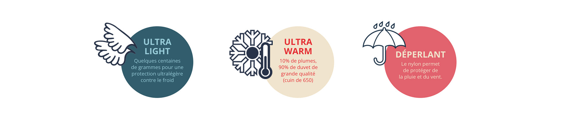 Composée de duvet et de plumes, la doudoune maintient au chaud tout en protégeant des intempéries, grâce à son revêtement déperlant. Elle peut également se porter sous un manteau. Compacte, elle se range et se transporte facilement.