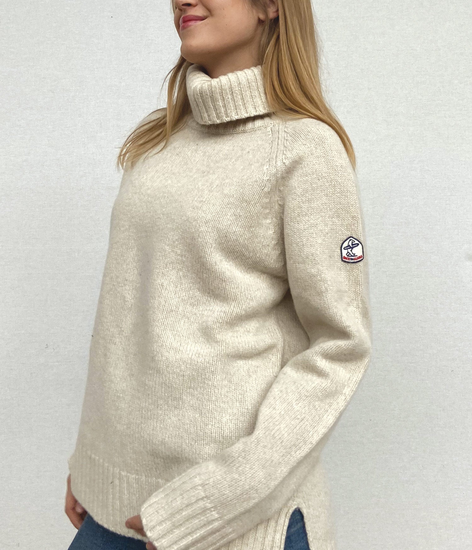 Chic, chaud et plein de caractère, ce pull col roulé signé Back to Alaska est la pièce cocooning par excellence. Sa coupe légèrement longue à l’arrière et sa fente sur le côté lui apportent une touche moderne et décontractée.